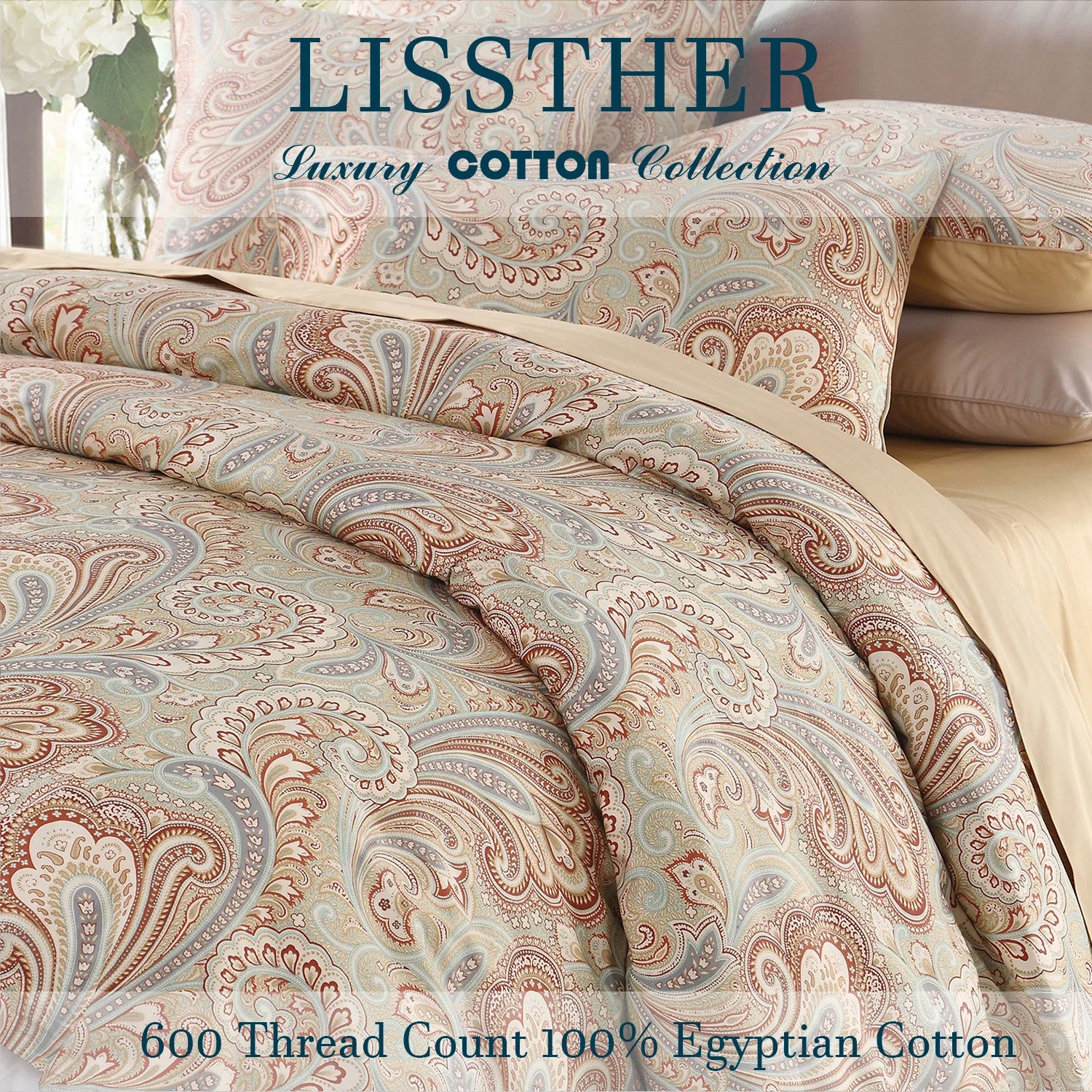 LISSTHERCN 3 Piece 600TC Egyptian Cotton Duvet Cover Set Boho Paisley