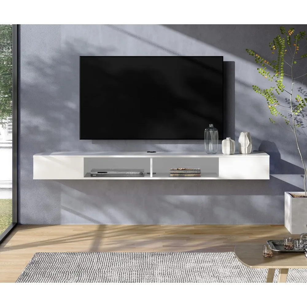 - 【MULTI-FUNCTION】 Floating white&gray tv stand media shelf can complement any style of room or furniture. Wall-mounted TV stands are both functional and decorative, tv stand long modern,modem rack shelf!It will add elegance and vitality to your bedroom, living room, media room, and office.