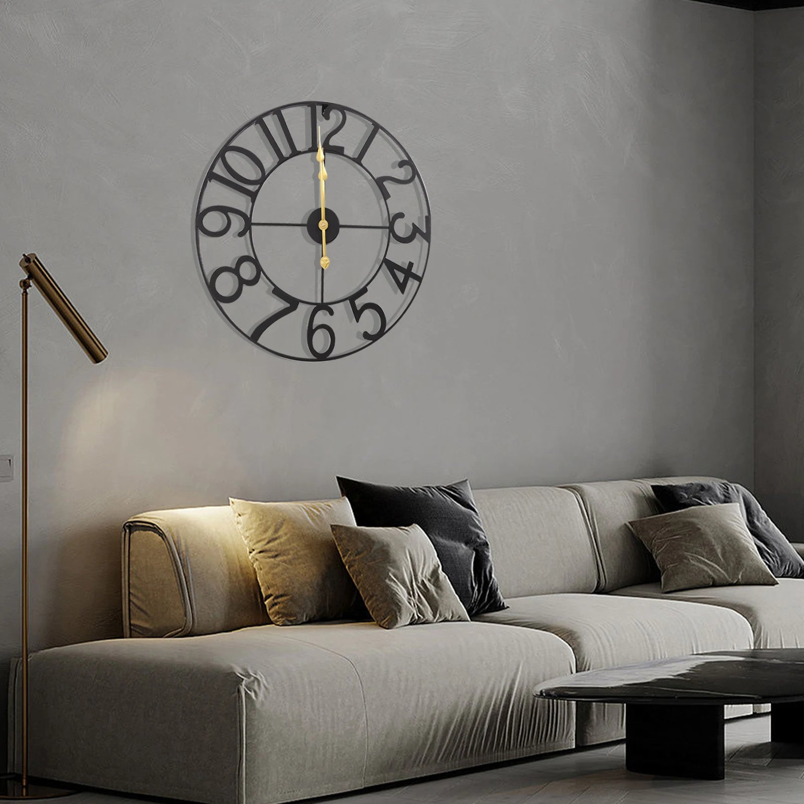 - A striking 24-inch black iron frame with gold pointers creates a distinctive focal point compatible with rustic, industrial, and Scandinavian vintage interiors.